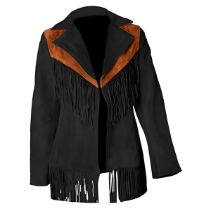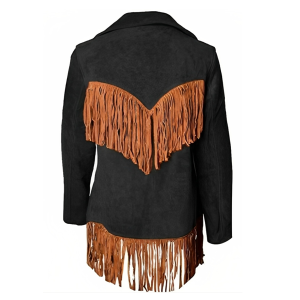 Women Suede Leather American Native Style Jacket Fringed – Black & Brown Fringes