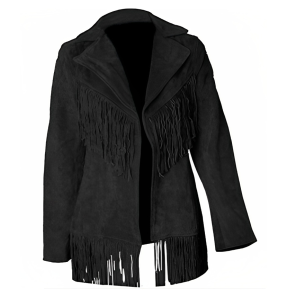Women Suede Leather American Native Style Jacket Fringed – Black & Brown